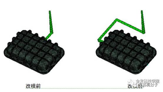 改善后效果如下:可以看出在更改進(jìn)膠口位置以后,制品無翹曲痕跡,這樣才是良好的制品.