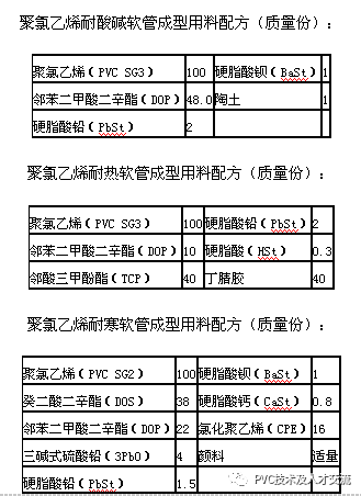 不同用途與特性的聚氯乙烯軟管用料參考配方如下。