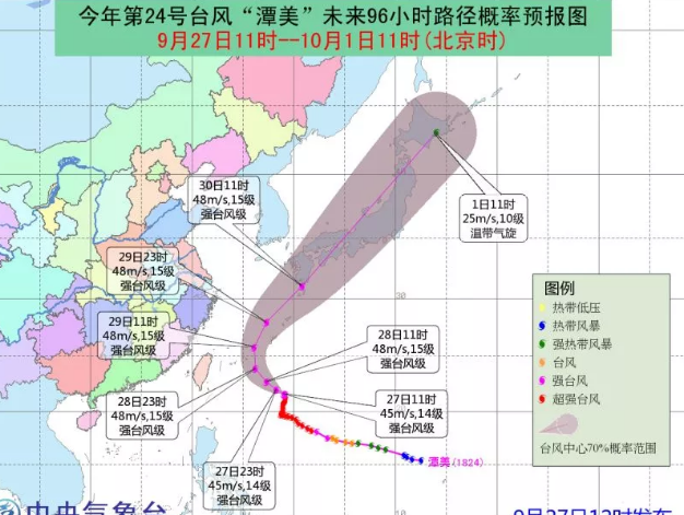 3:27日,“潭美”對我國近海無影響;28-30日,東海自南向北的風力將逐漸加大到8級以上。
