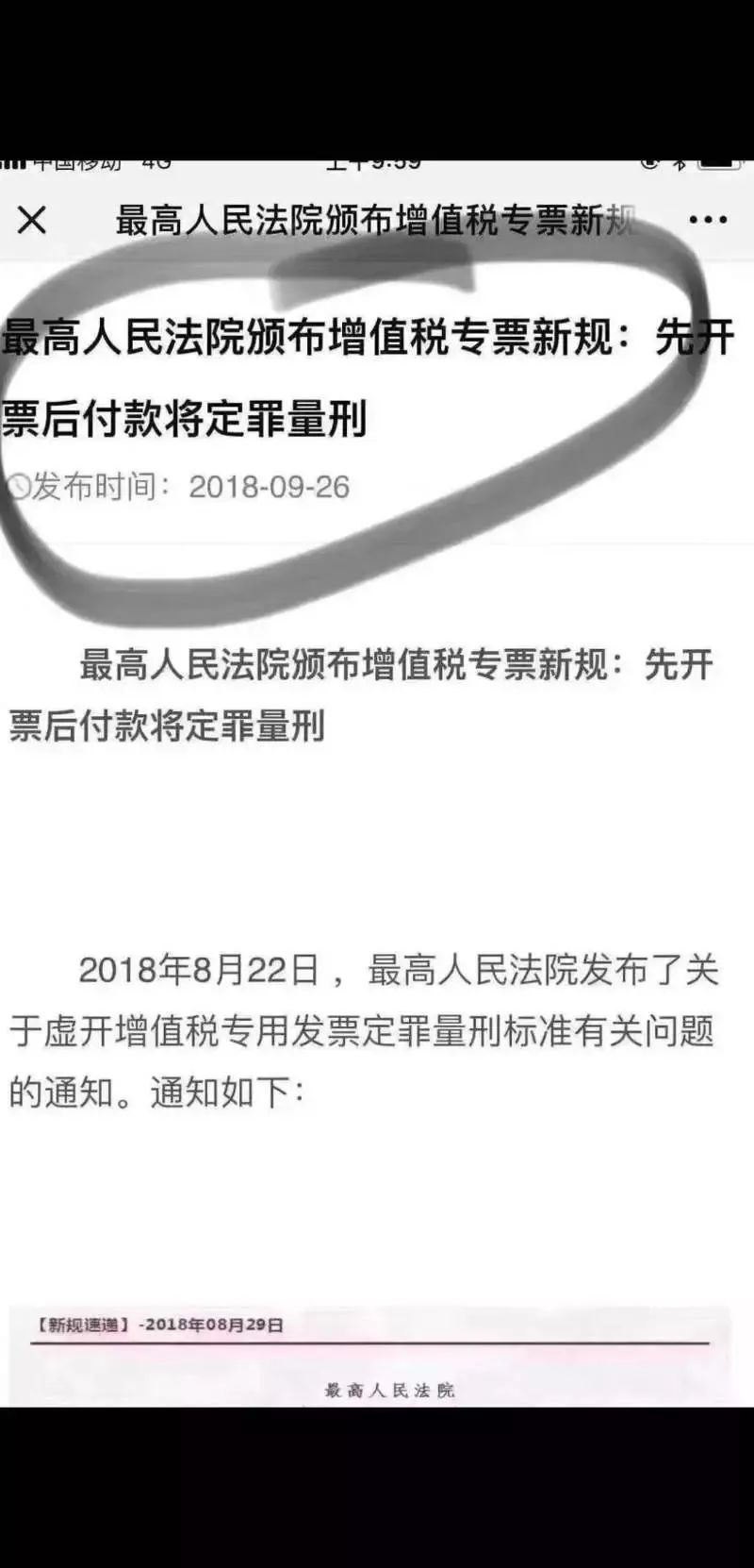 查詢最高院發(fā)布的《最高人民法院關(guān)于虛開增值稅專用發(fā)票定罪量刑標(biāo)準(zhǔn)有關(guān)問題的通知》( 法〔2018〕226號)原文,文件只是規(guī)定:虛開增值稅專用發(fā)票定罪量刑標(biāo)準(zhǔn)有關(guān)問題,沒有說新增虛開發(fā)票范圍,沒有說“先開票后付款”屬于虛開專票。