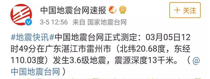 剛剛中午,各位或許在吃飯或許在午睡休息的時(shí)候廣東湛江發(fā)生了地震