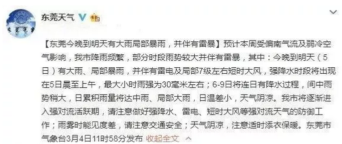 據(jù)@東莞天氣發(fā)布