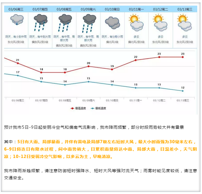 未來幾天都會(huì)有大雨、局部暴雨并且日溫差小,天氣陰涼