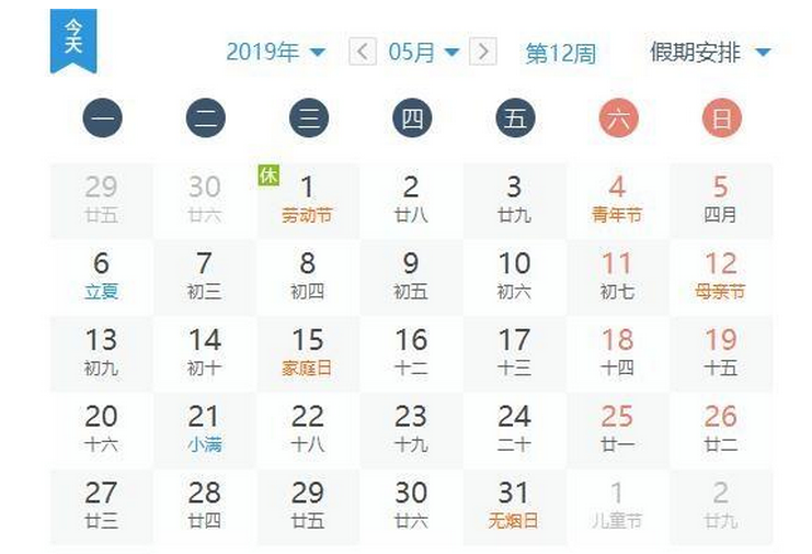 一、2019年5月1日至4日放假調(diào)休,共4天。4月28日(星期日)、5月5日(星期日)上班。