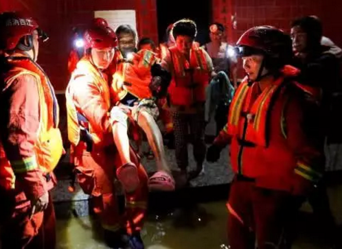 文章標題:—江西吉安連日暴雨成災房屋進水及群眾被困等,消防救援人員救出被困村民