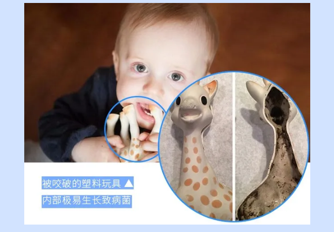 不僅如此,塑料制品本身的材料也會(huì)引來(lái)大量細(xì)菌等微生物,加工過(guò)程中使用的增塑劑、 纖維素、 濕潤(rùn)劑、穩(wěn)定劑和色素等原料,一旦制品發(fā)生嚴(yán)重破裂情況,它們就極易成為微生物的溫床;還有一些聚合物的表面是多孔的,會(huì)加速微生物的污染和聚集,進(jìn)而導(dǎo)致污漬和異味,并可能傳播細(xì)菌。例如,被咬破的塑料玩具。