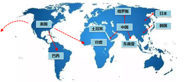 三月中旬起,國外蔓延擴散 ,各國開始逐漸仿效采取中國,停課、隔離、封城等措施。需求內(nèi)外下降,當前市場關(guān)注的熱點是印度需求的下滑和美、日、韓、臺灣等地的貿(mào)易流向。